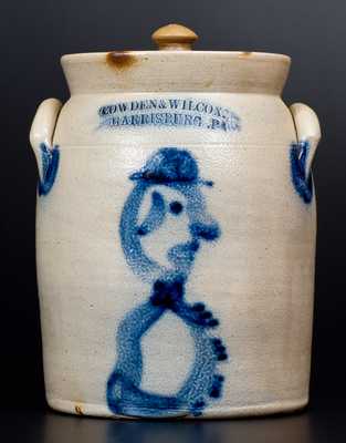 COWDEN & WILCOX / HARRISBURG, PA Stoneware Jar with Hatted Man Decoration