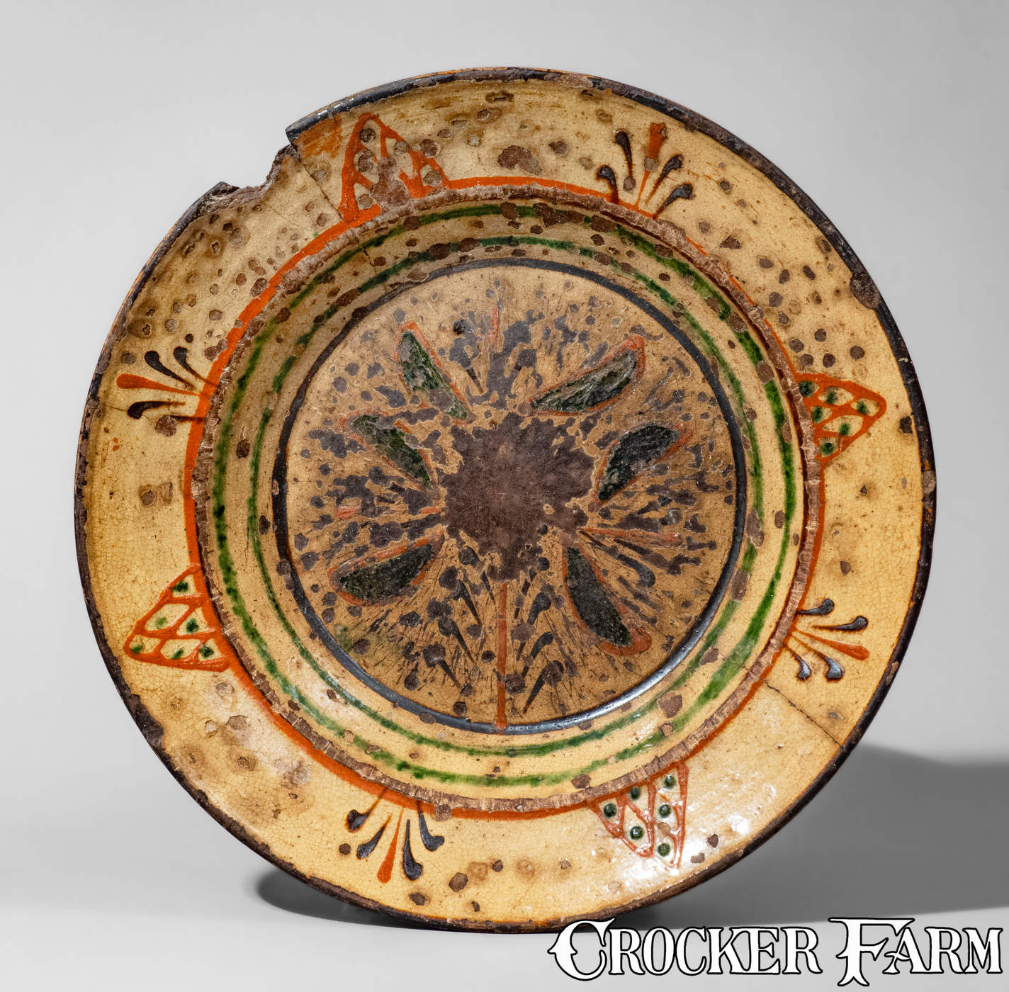 Attrib. John Monday, Haycock Township, Bucks County, PA "Mar 27 1830" Sgraffito Redware Plate