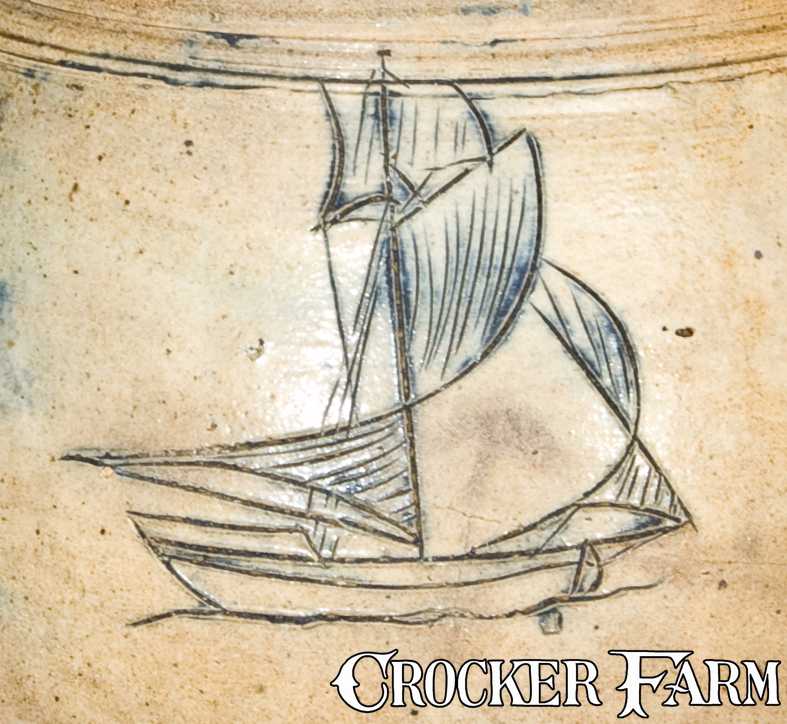 NY Stoneware Early Jar with Incised Sloop, Manhattan origin