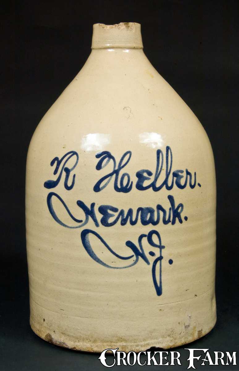 Newark, NJ Stoneware Script Jug, attrib. Fulper, Flemington, NJ