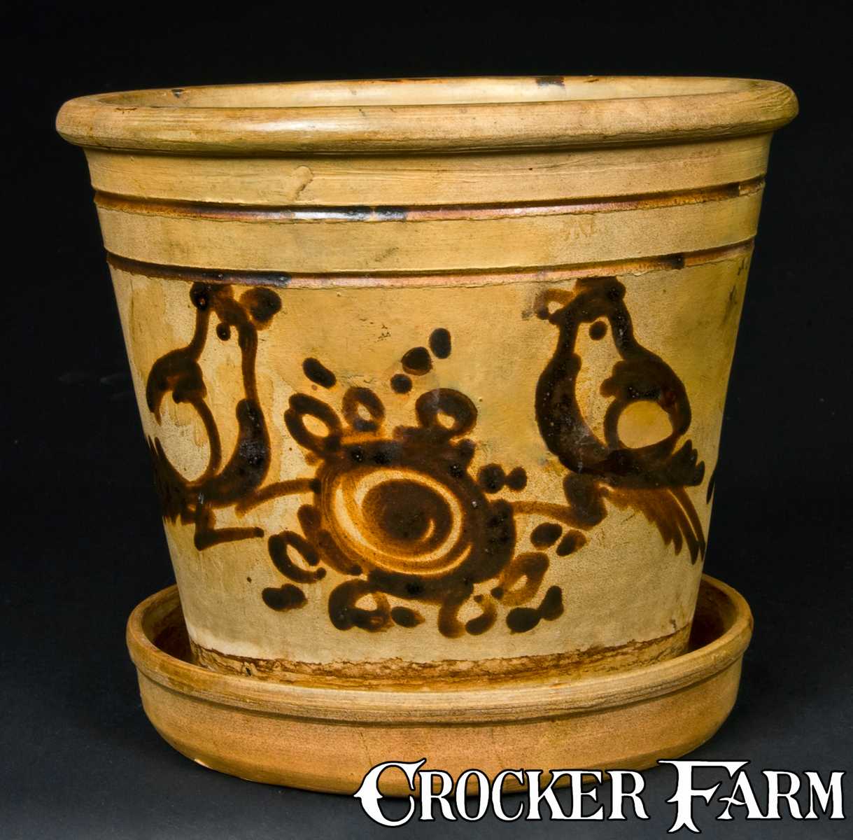 NY State Stoneware Flowerpot with Albany Slip Bird Decoration