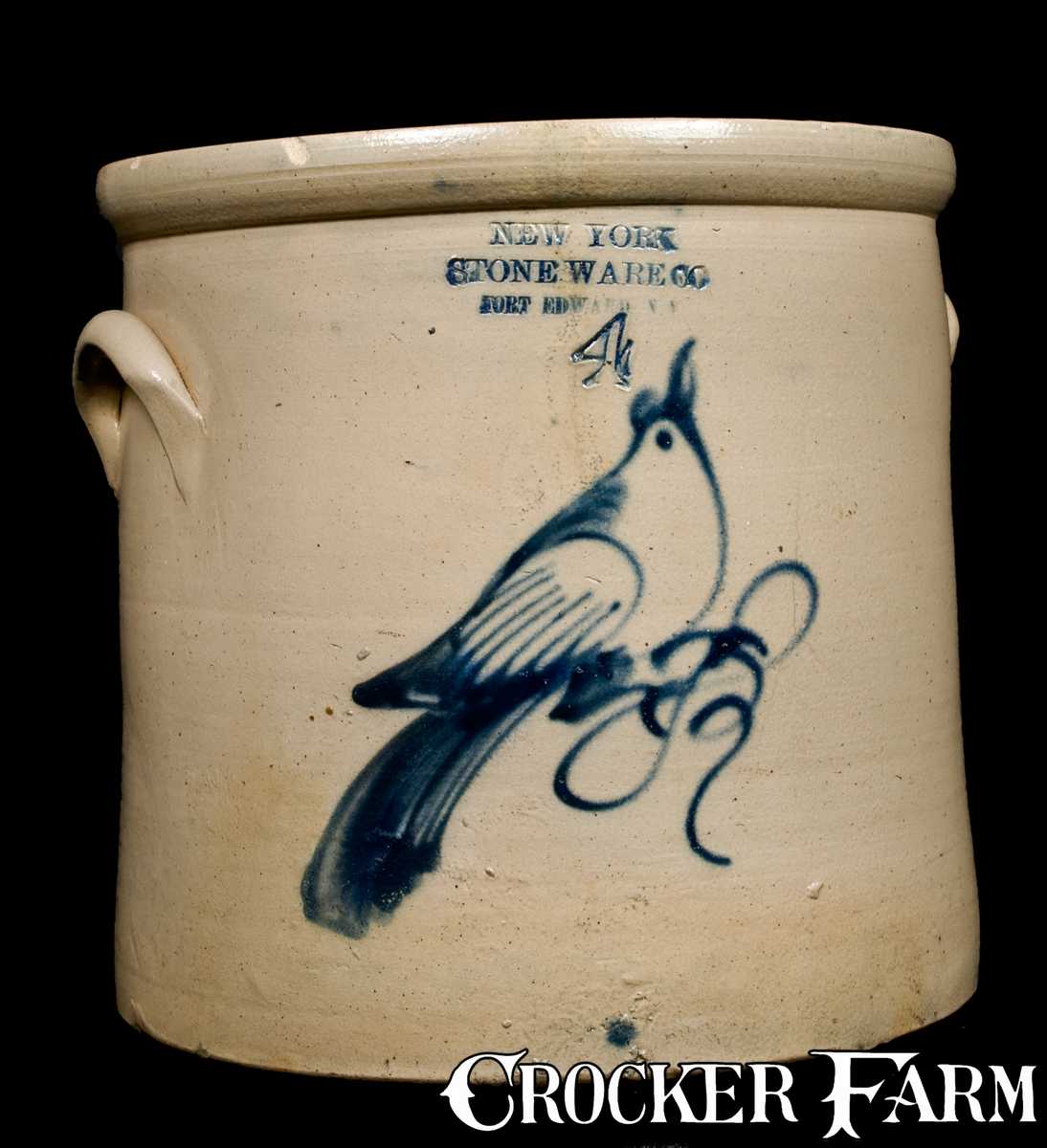 NEW YORK STONEWARE CO. FORT EDWARD, NY Stoneware Bird Crock