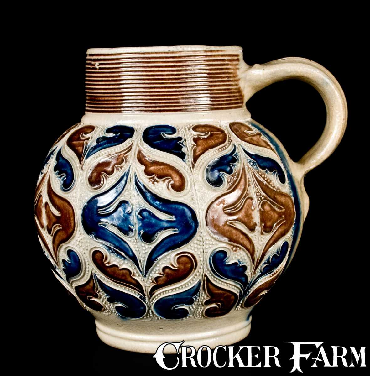 Rare and Fine Westerwald Stoneware Jug w/ Applied Decoration, c1690