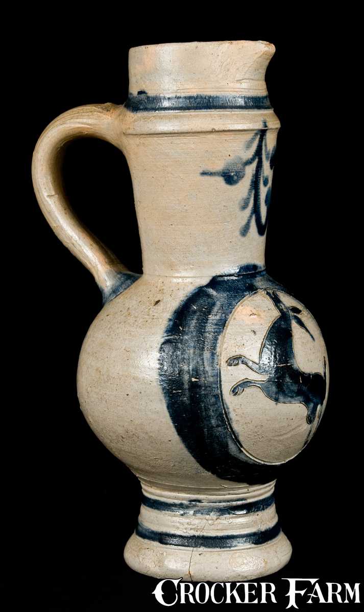 Westerwald Stoneware Pitcher w/ Incised Deer, circa 1760