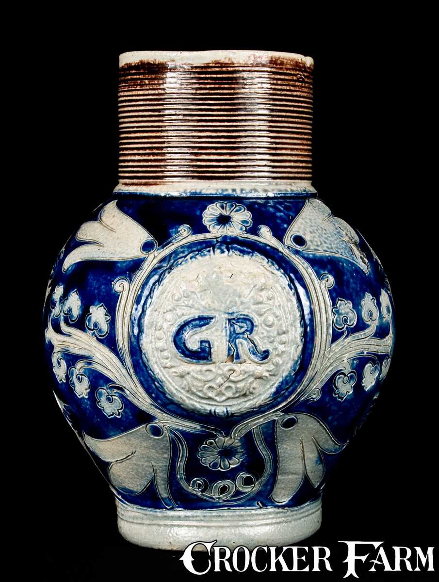 Westerwald Stoneware "GR" Jug w/ Incised Decoration, c1740