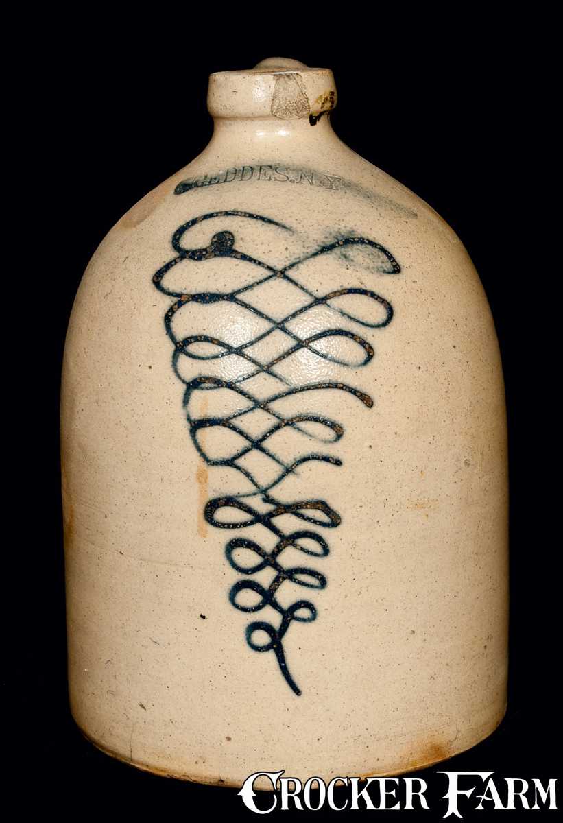 Geddes, New York, Stoneware Jug w/ Slip-Trailed Design