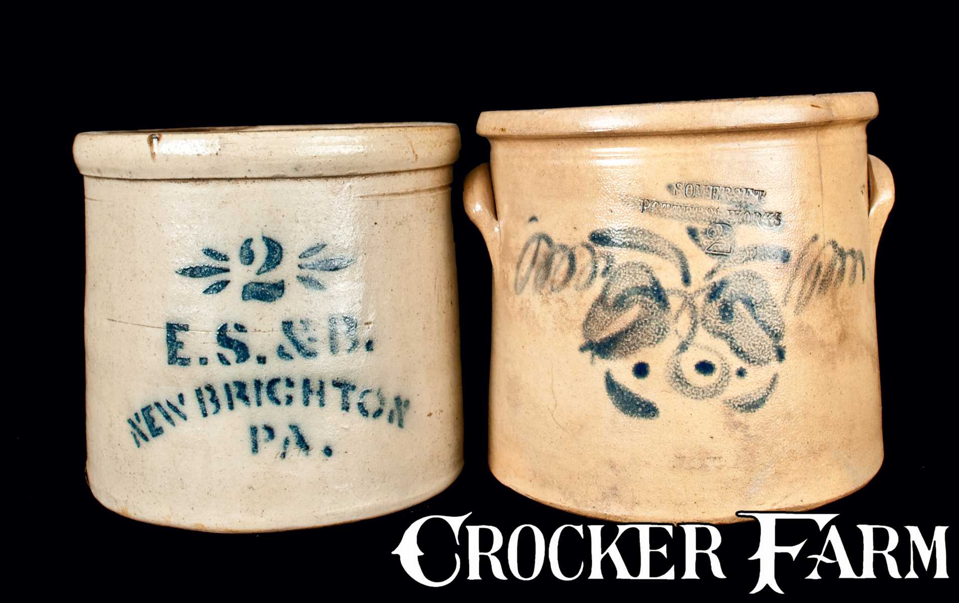 Lot of Two: Stoneware Crocks, E. S. & B. and SOMERSET POTTERS WORKS