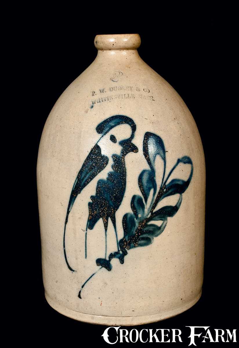 F. B. Norton Stoneware Parrot Jug with WHITINSVILLE, MA Advertising