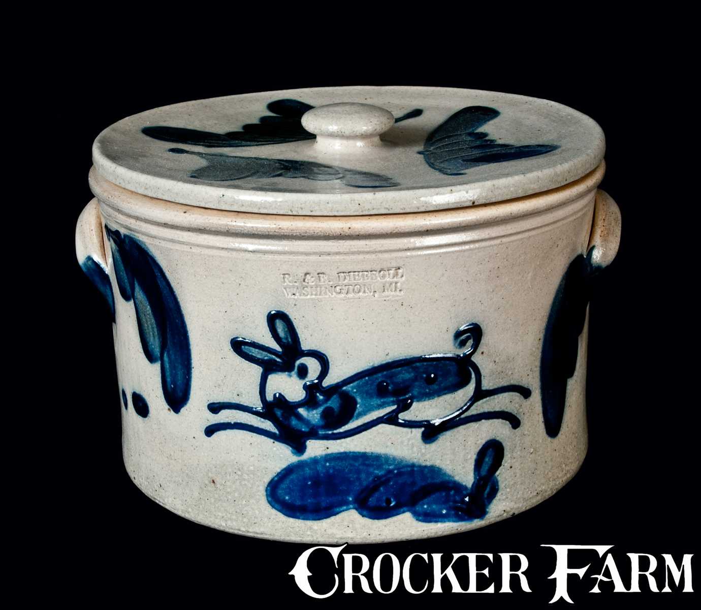 R. & B. DIEBBOLL / WASHINGTON, MI Contemporary Stoneware Cake Crock with Rabbit