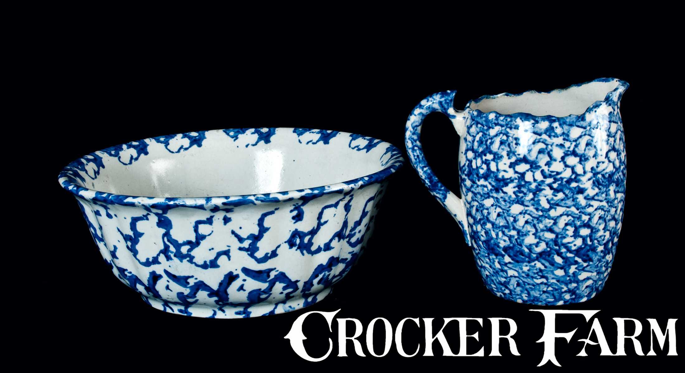 Lot of Two: Spongeware Pitcher and Bowl