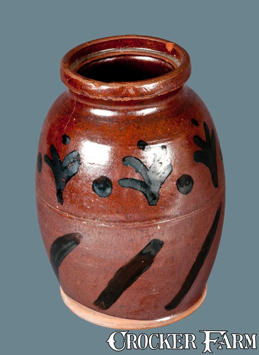Rare Slip-Decorated Redware Jar, American, early to mid 19th century