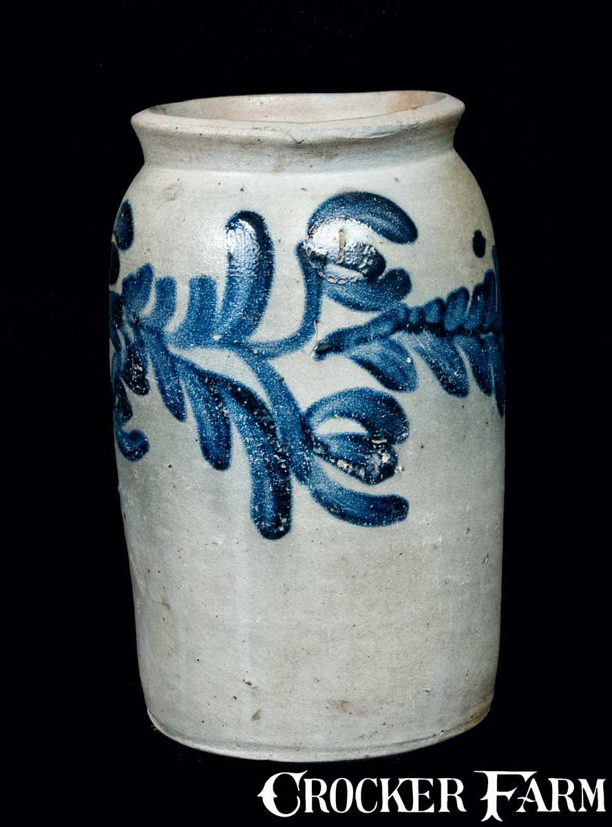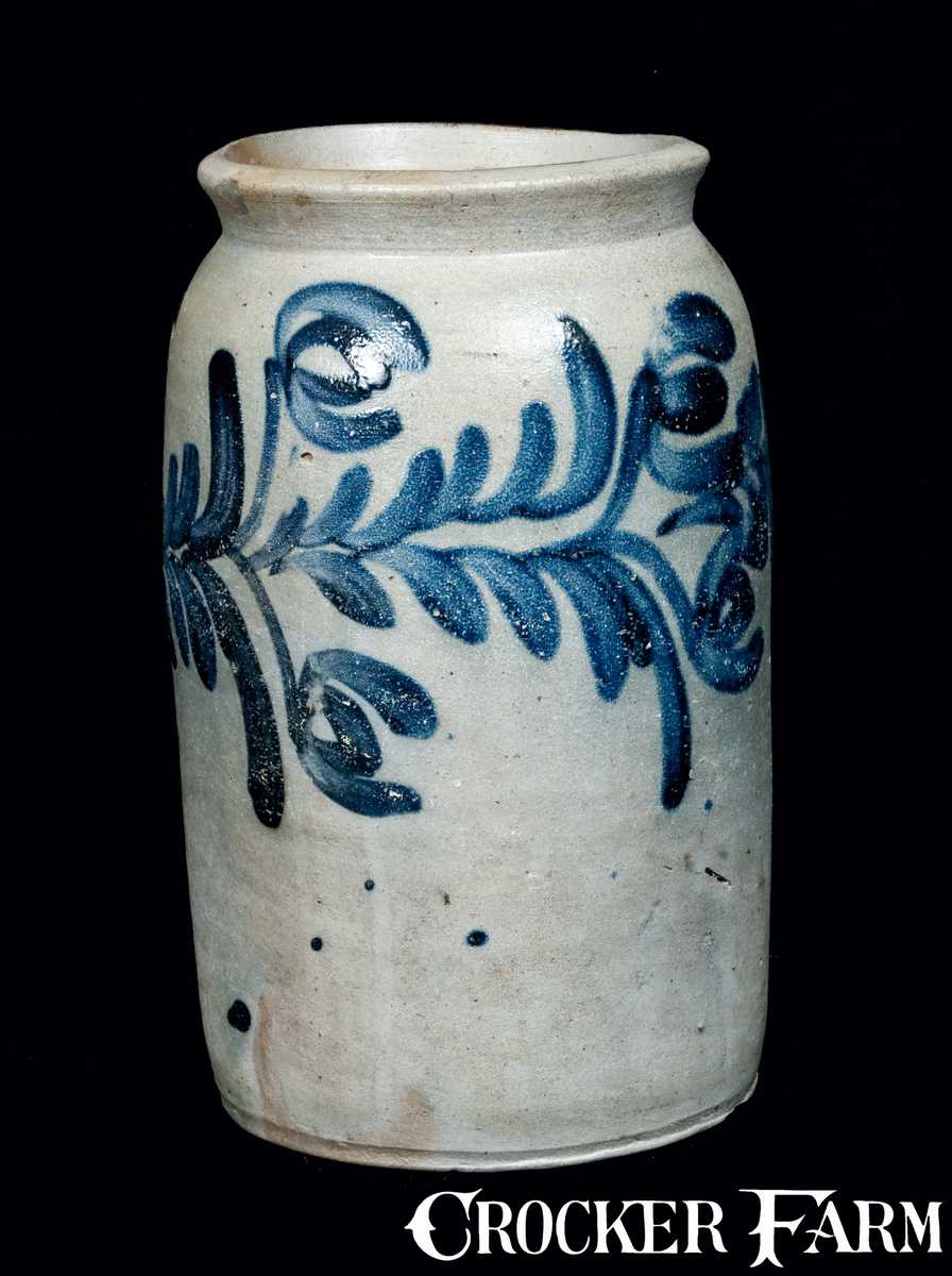 Baltimore Stoneware Table Churn with Cobalt Floral Decoration, One-Gallon