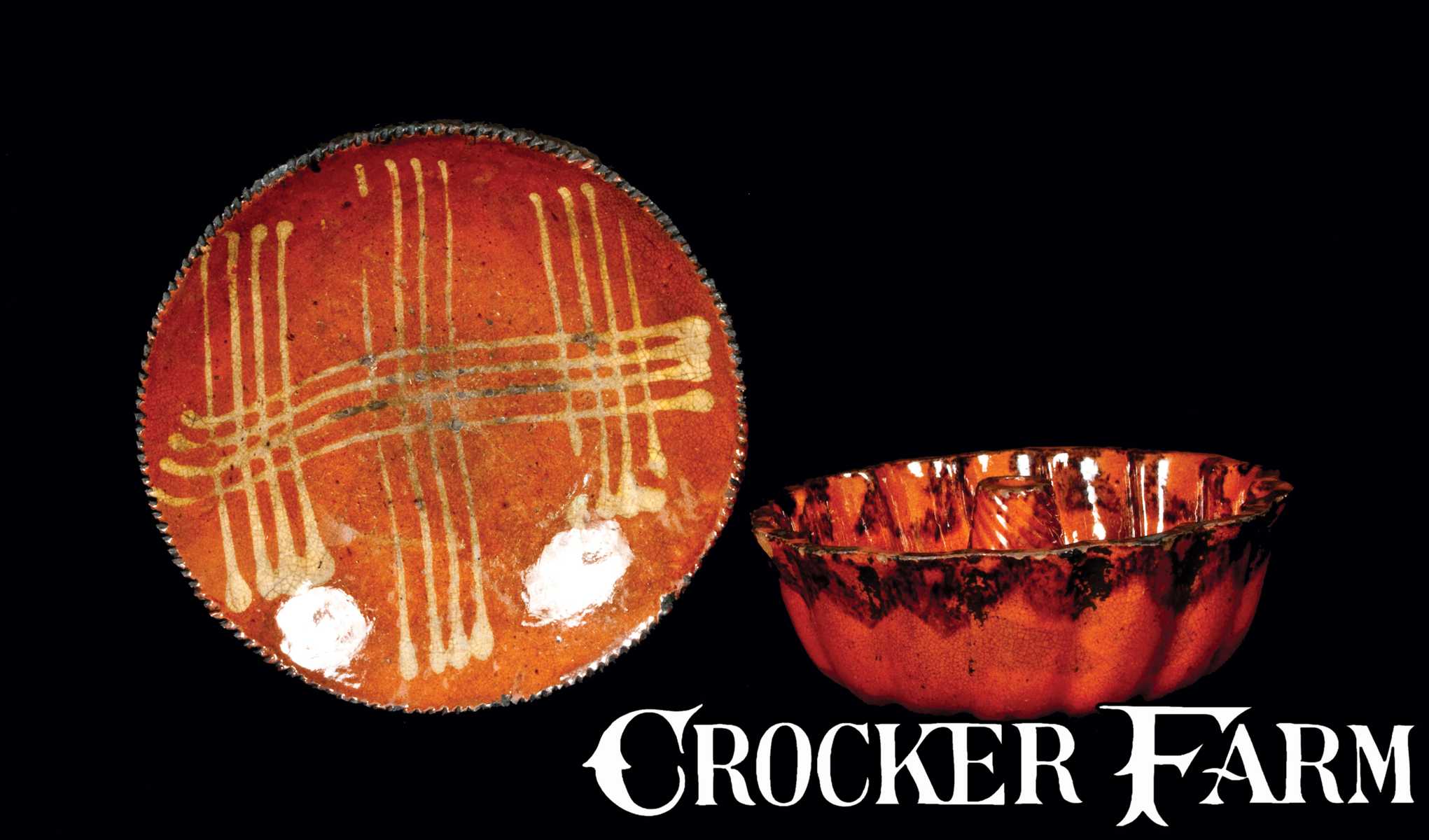 Lot of Two: Slip-Decorated Redware Plate and Redware Cake Mold