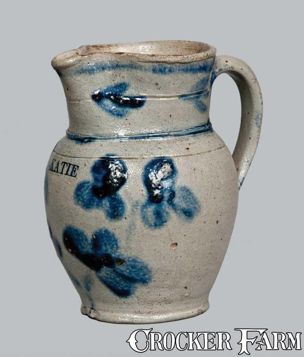Exceptional Baltimore Stoneware Toy Pitcher Inscribed "Katie"