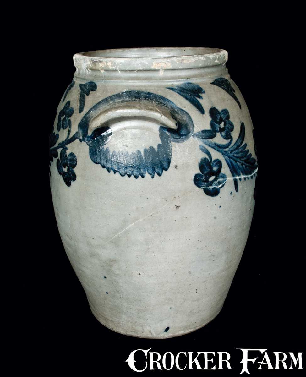 Baltimore, MD Stoneware Jar with Cobalt Floral Decoration, Five-Gallon