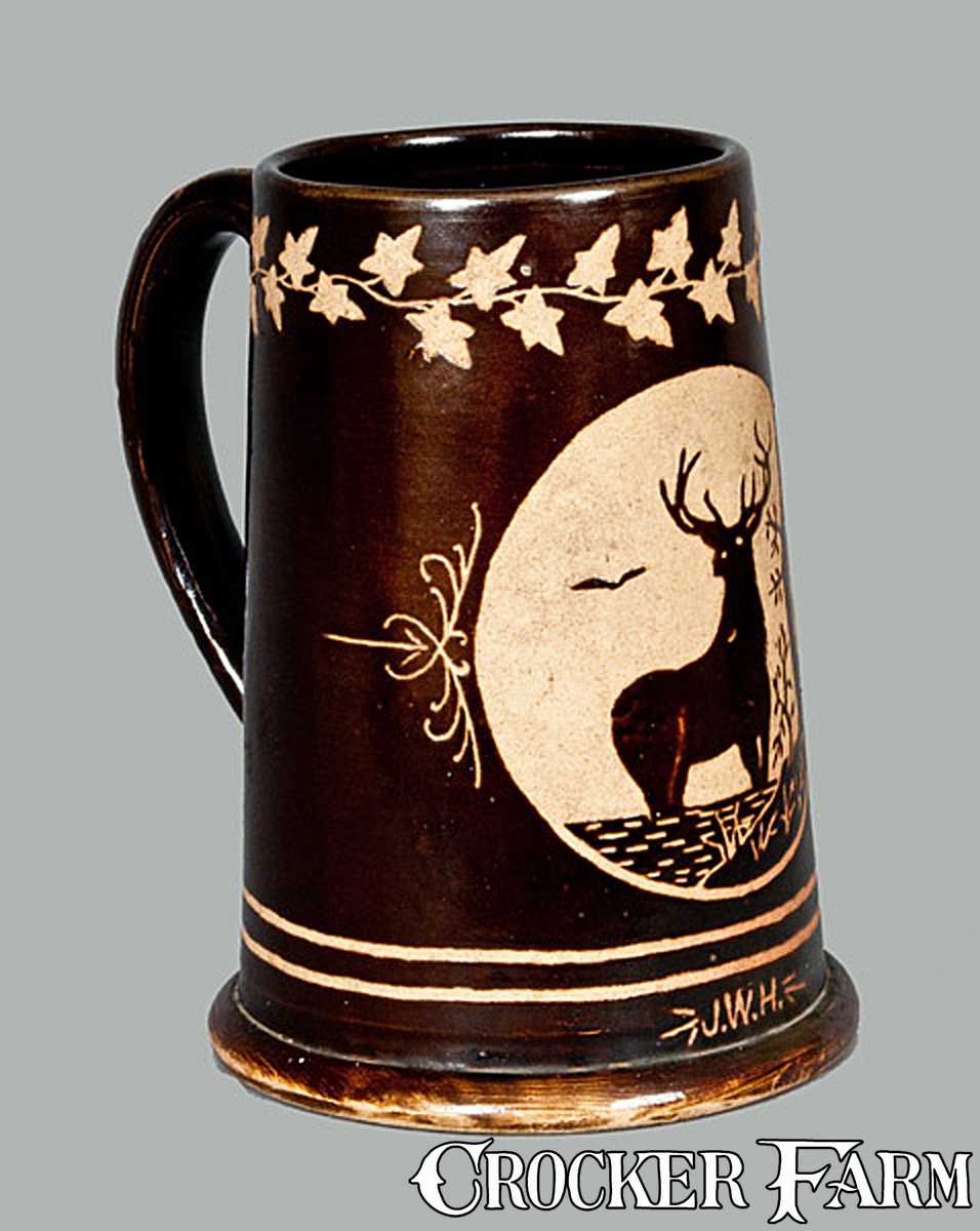 Stoneware Stein with Elk Design Dated 1874