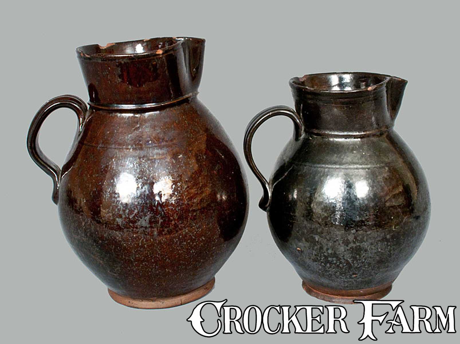 Lot of Two: Manganese Glazed Redware Pitchers