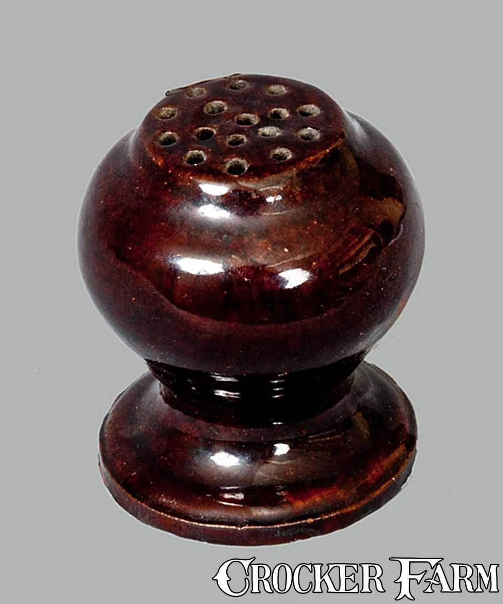 Manganese Glazed Redware Sander or Shaker