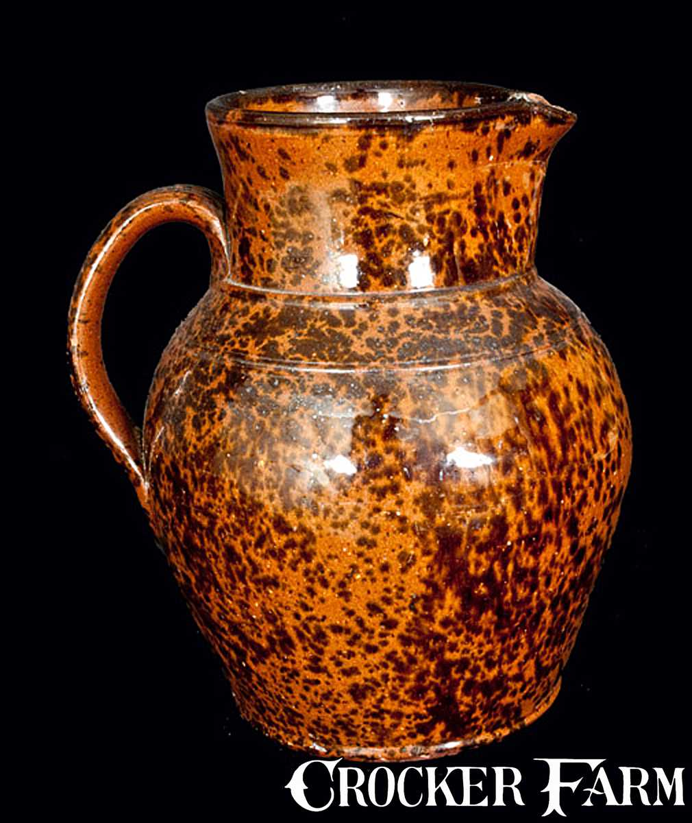 Pennsylvania Redware Pitcher with Speckled Manganese Decoration