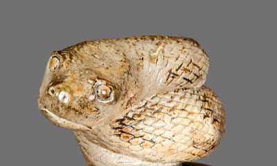 Very Rare Hand-Modeled Stoneware Snake Jug Stopper, Anna Pottery, circa 1880