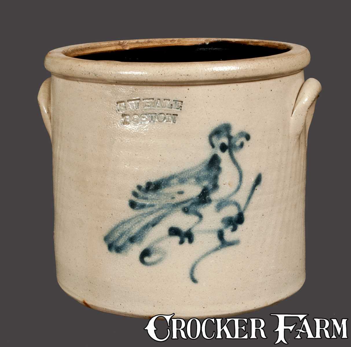 Boston Stoneware Advertising Crock with Bird Decoration.