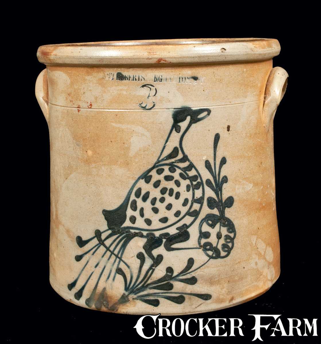3 Gal. W. ROBERTS / BINGHAMPTON Stoneware Crock with Bird Decoration