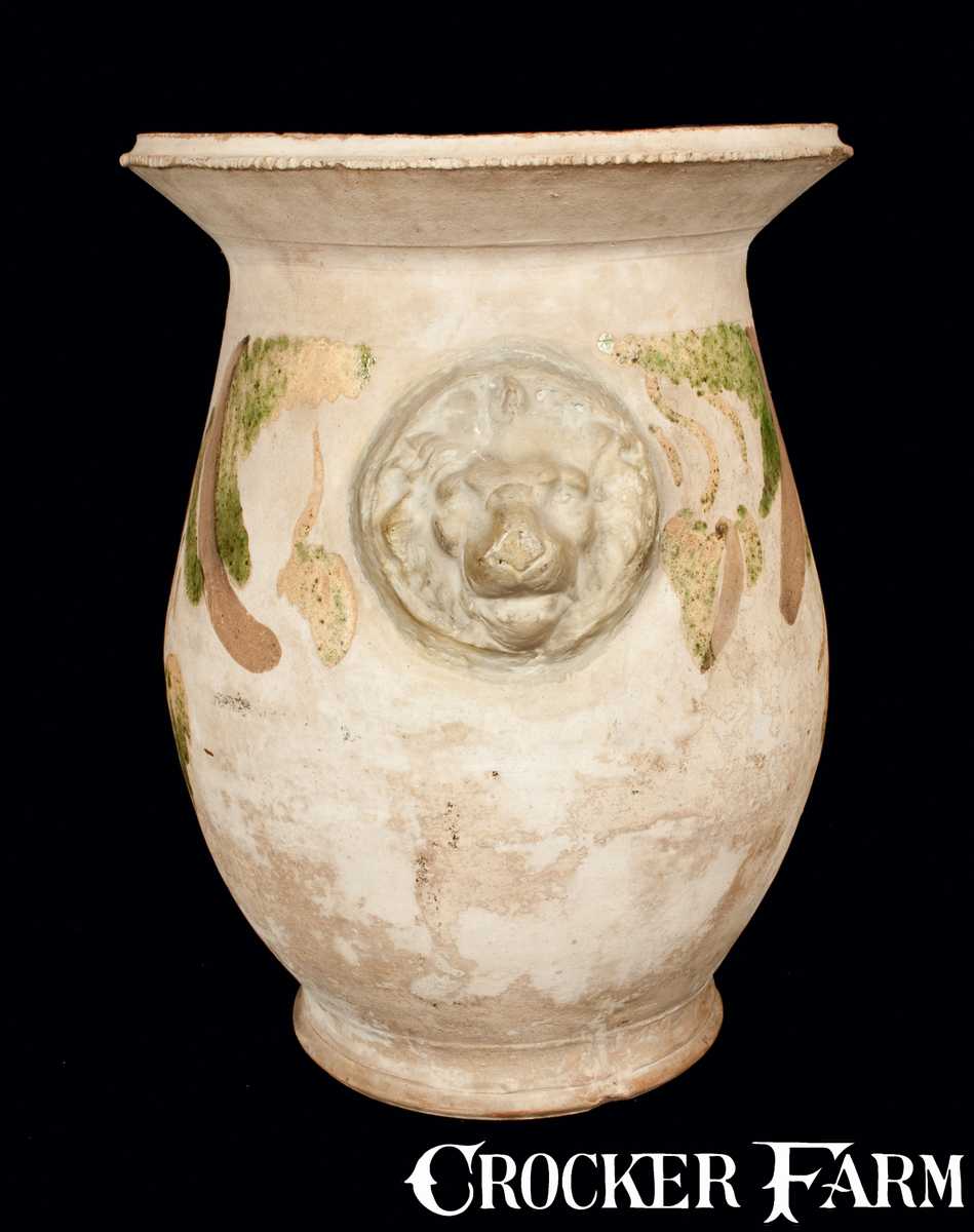 Rare SOLOMON BELL / STRASBURG / VA Slip-Decorated Redware Urn w/ Lion's Head Handles