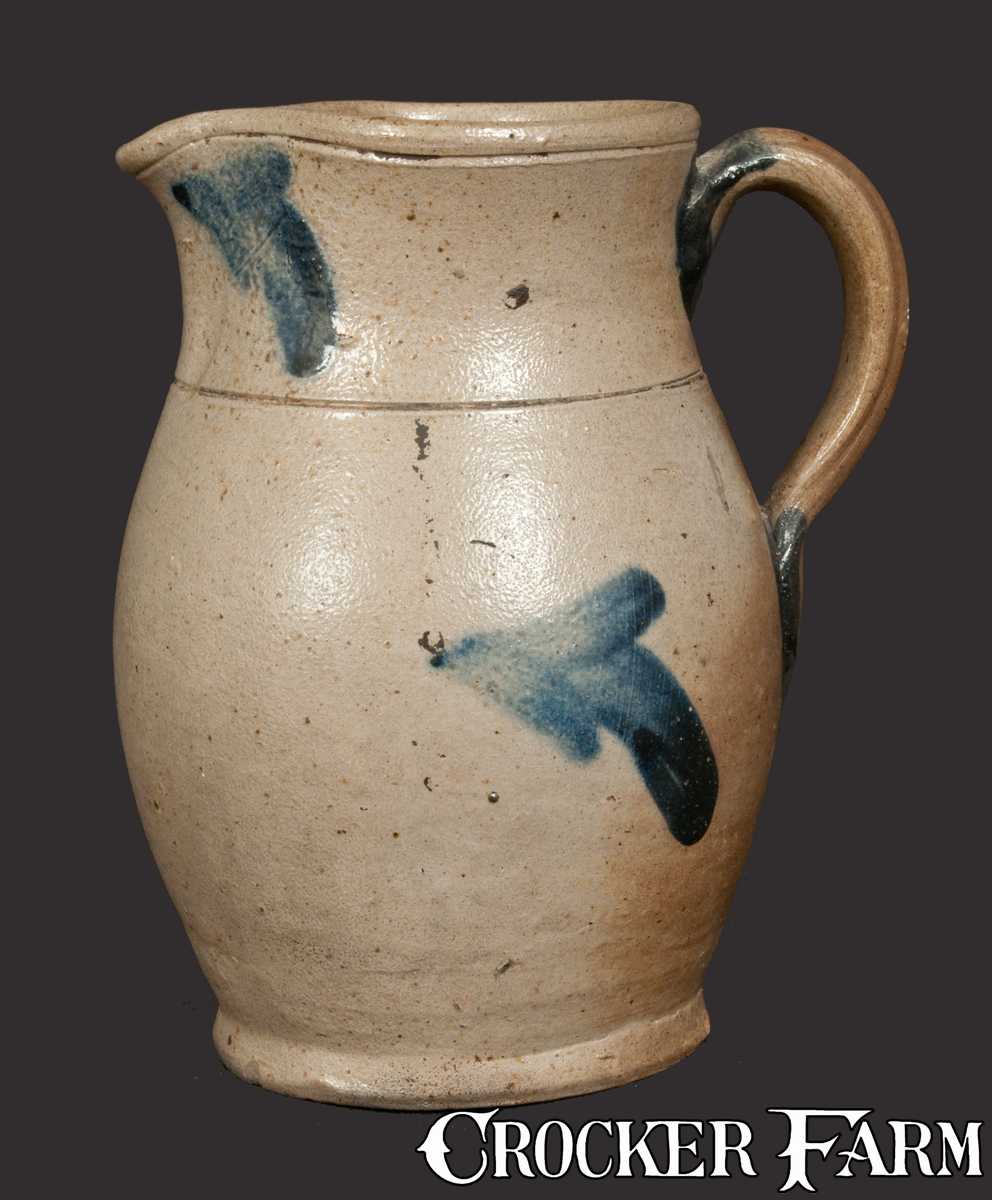 Rare Small-Sized Stoneware Pitcher with Cobalt Foliate Decoration, Baltimore, MD origin, circa 1875
