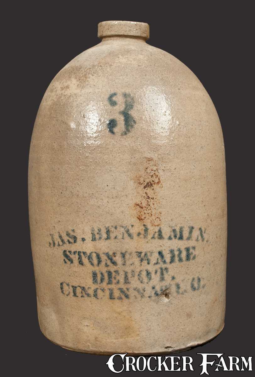 Three-Gallon "JAS. BENJAMIN. / CINCINNATI, O." Stoneware Jug