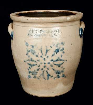 2 Gal. F. H. COWDEN / HARRISBURG, PA Stoneware Crock with Floral Decoration