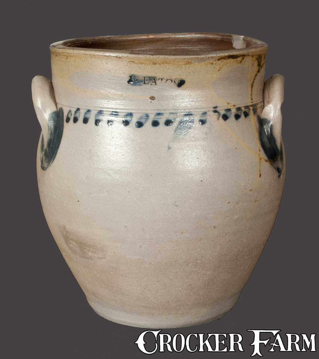 Rare J. EATON Stoneware Jar with Cobalt Decoration