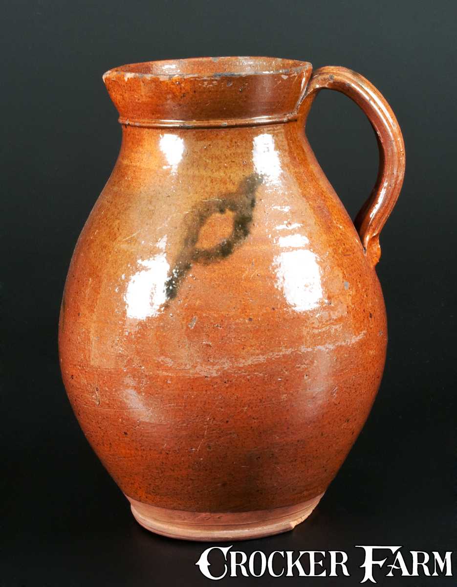 Ovoid Lead-Glazed Redware Pitcher with Copper Leaf Decoration