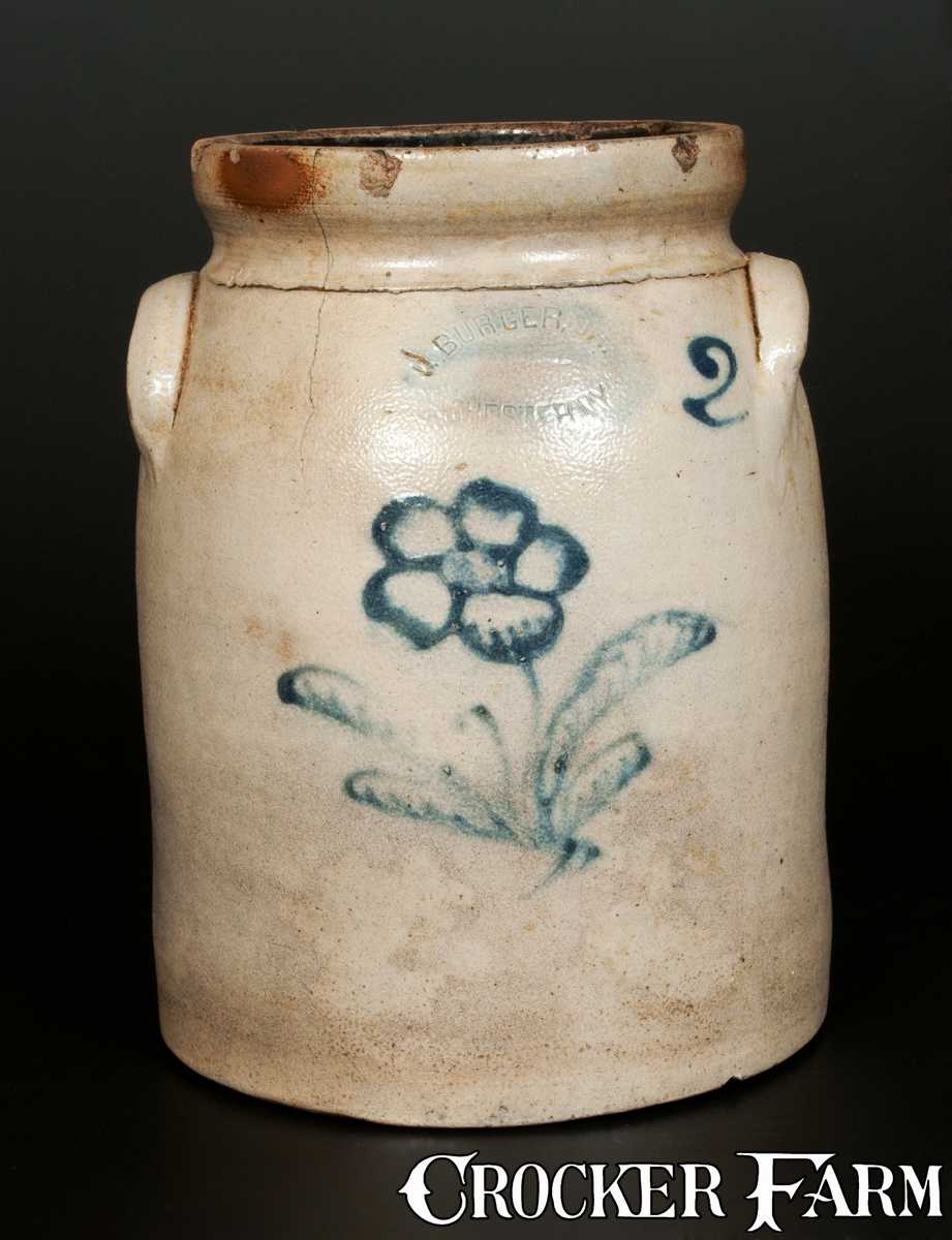 2 Gal. J. BURGER, JR. / ROCHESTER, NY Stoneware Crock with Floral Decoration