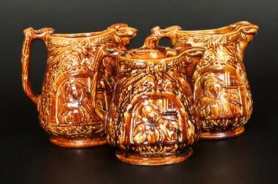 Lot of Three: Rockingham Ware Hound-Handled Pitchers