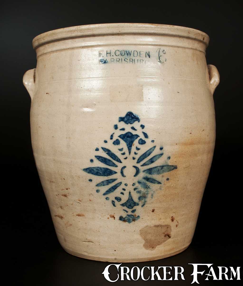 6 Gal. F. H. COWDEN / HARRISBURG, PA Stoneware Crock with Stenciled Decoration