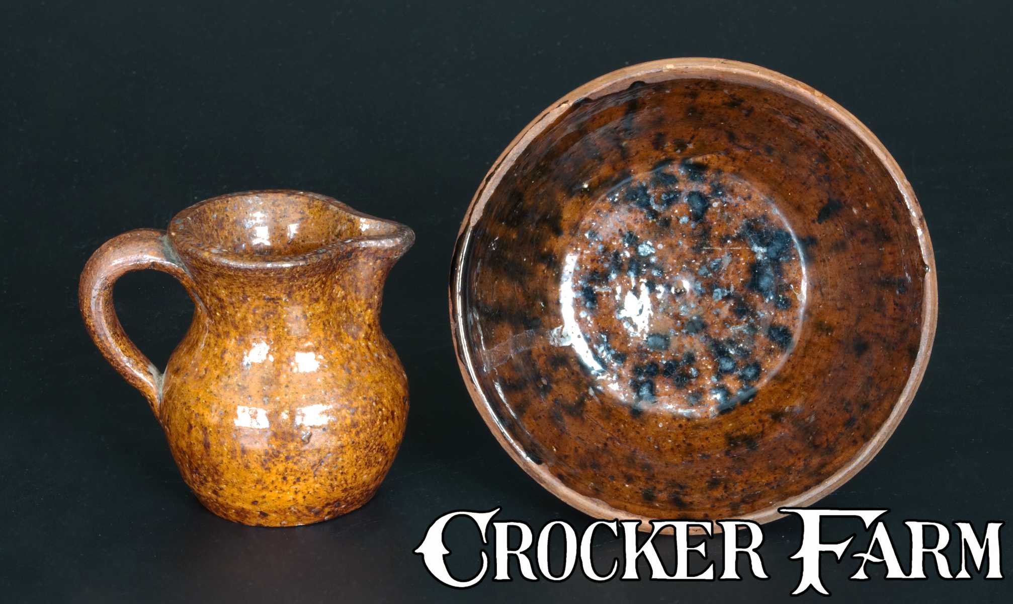 Very Rare Miniature Redware Pitcher & Bowl w/ Cain Family (Sullivan County, TN) Provenance