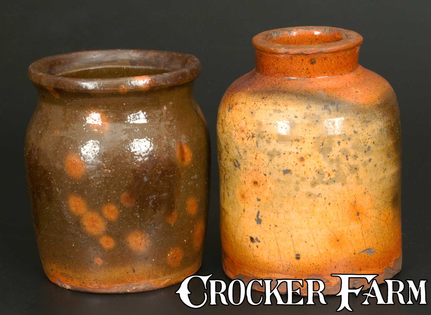 Lot of Two: Lead-Glazed Redware Jar and Lead-Glazed Redware Canning Jar, New England origin.