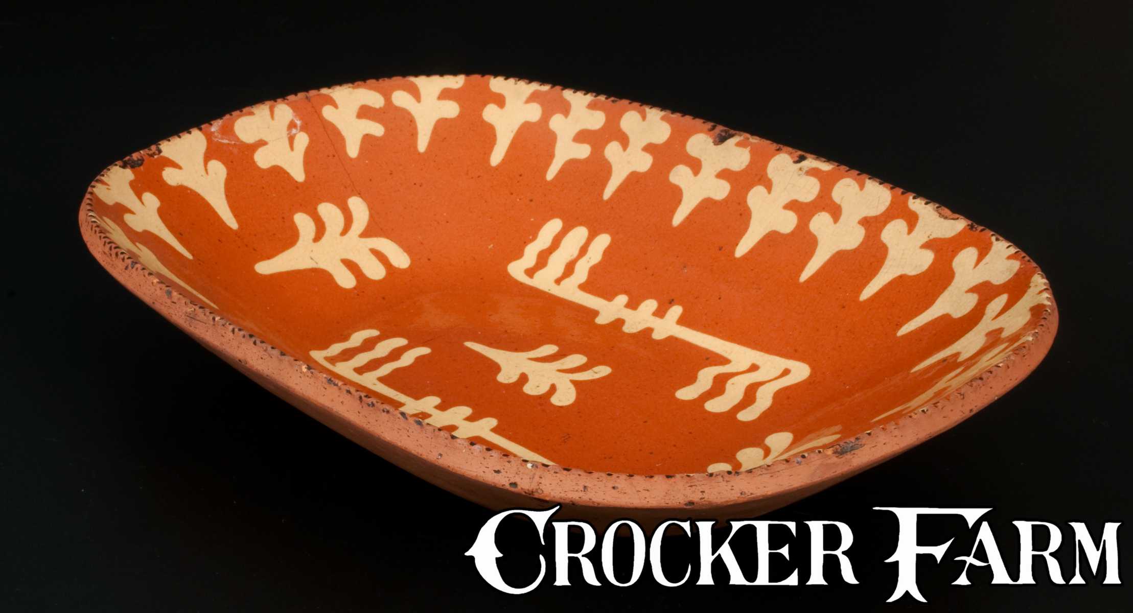 Outstanding American Redware Loaf Dish with Profuse Slip Decoration