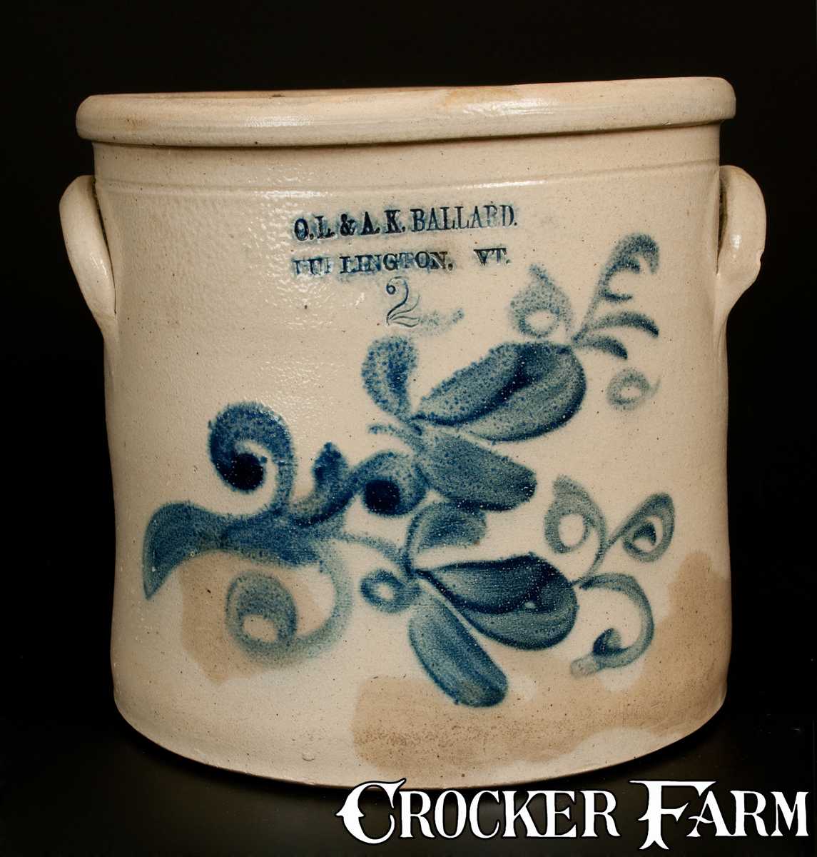 2 Gal. O.L. & A.K. BALLARD / BURLINGTON, VT Stoneware Jar