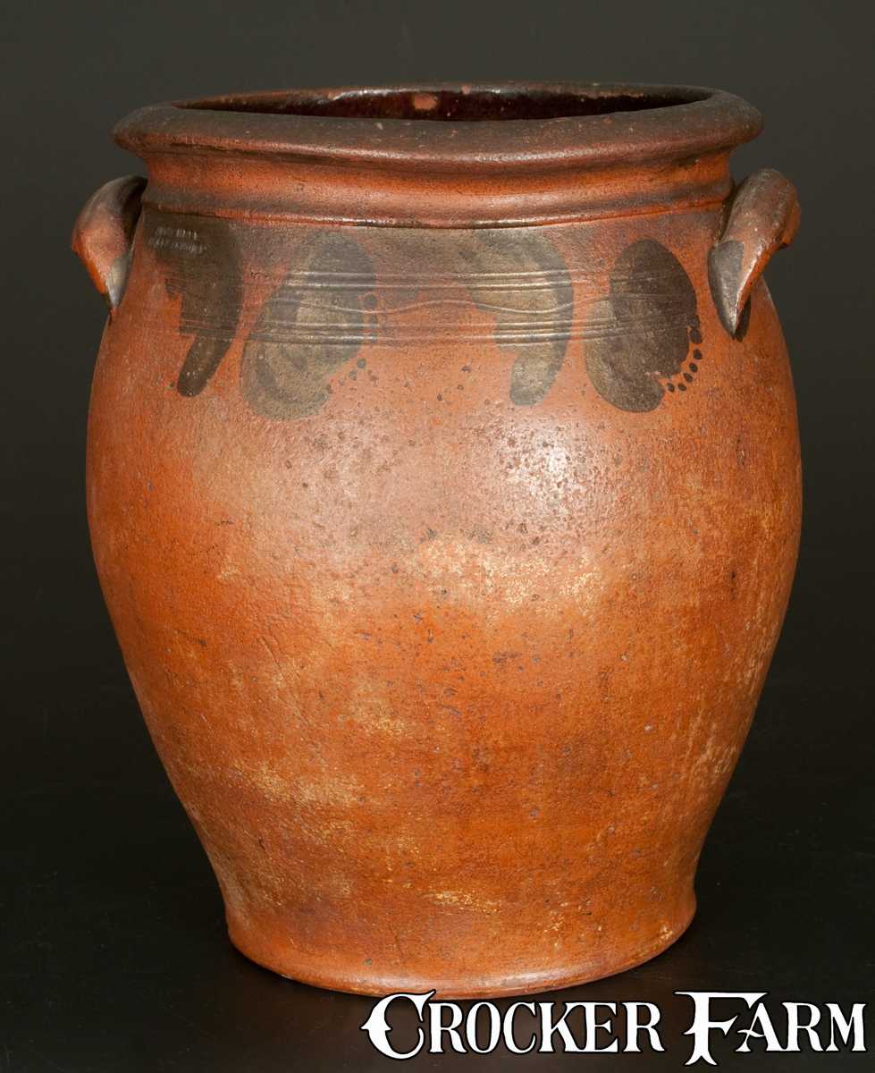 JOHN BELL / WAYNESBORO Ovoid Redware Jar with Brushed Manganese Floral Decoration
