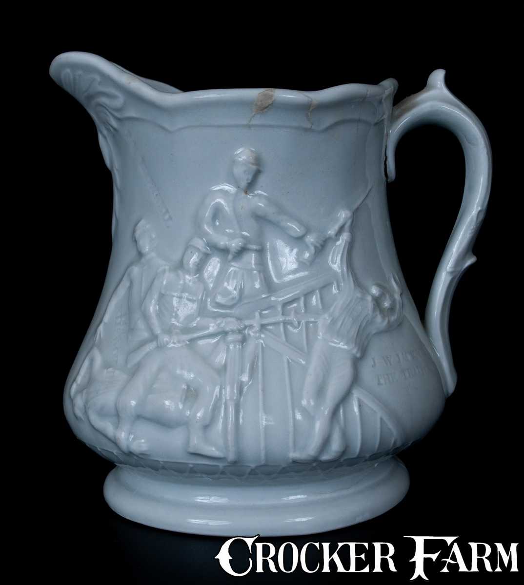 Colonel Ellsworth Commemorative Ironstone Pitcher, Stamped "M A P / TRENTON, NJ," Millington, Astbury, & Poulston, Trenton, NJ, c1861