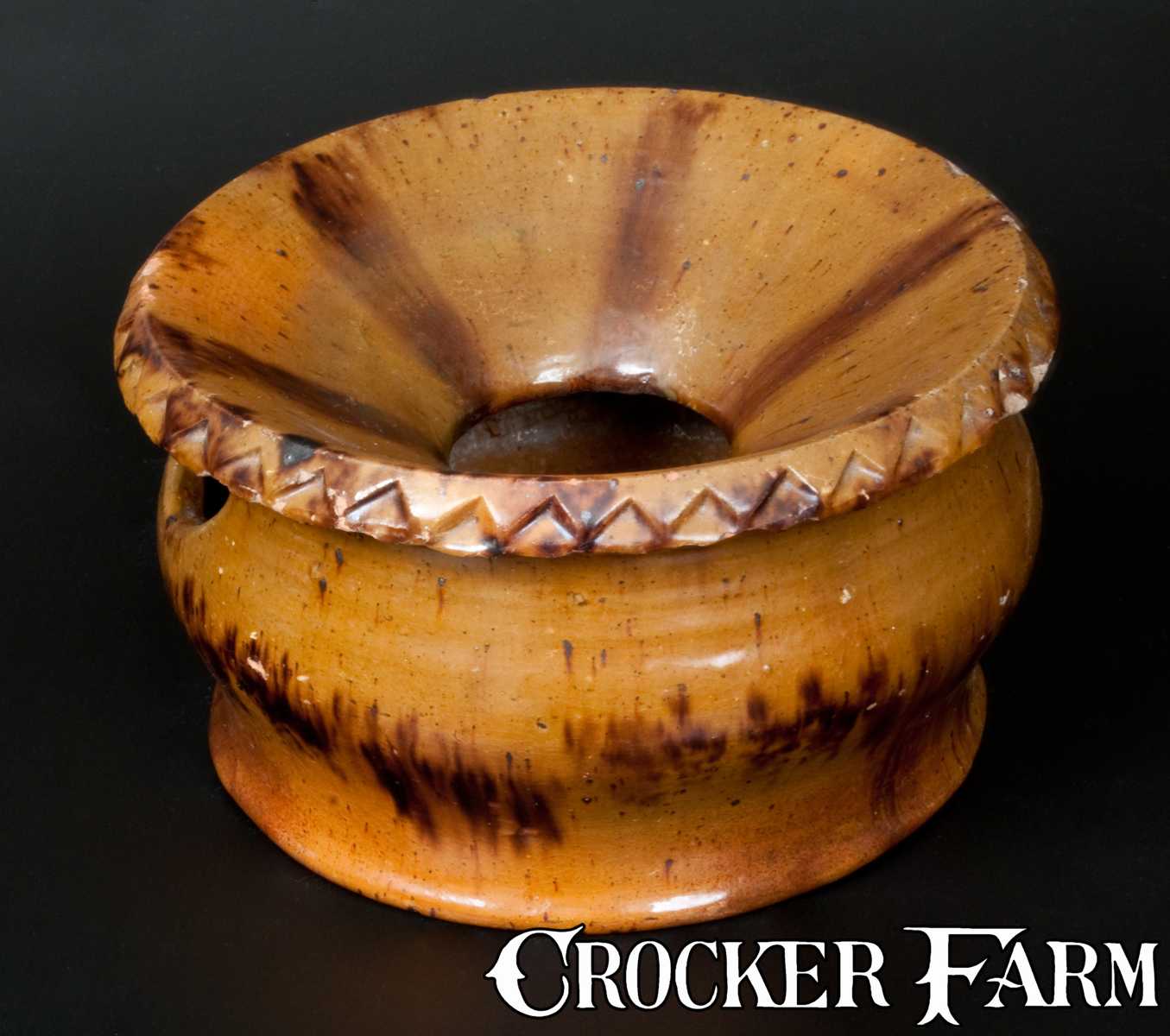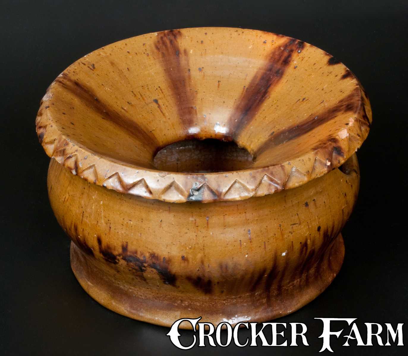 Unusual Redware Spittoon w/ Saw-Tooth Rim, possibly Jacob Heart, Chambersburg, PA