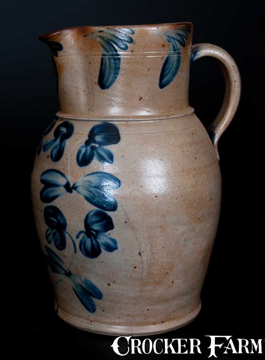 Fine Two-Gallon Stoneware Pitcher w/ Cobalt Clover Decoration, Baltimore, MD, c1850