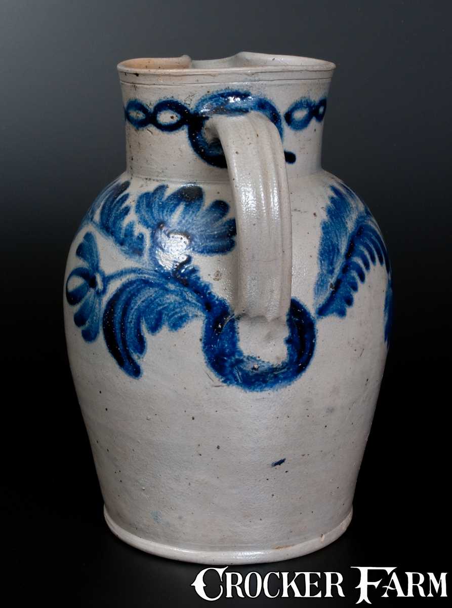 Fine Baltimore Stoneware Pitcher w/ Cobalt Floral Decoration, circa 1840