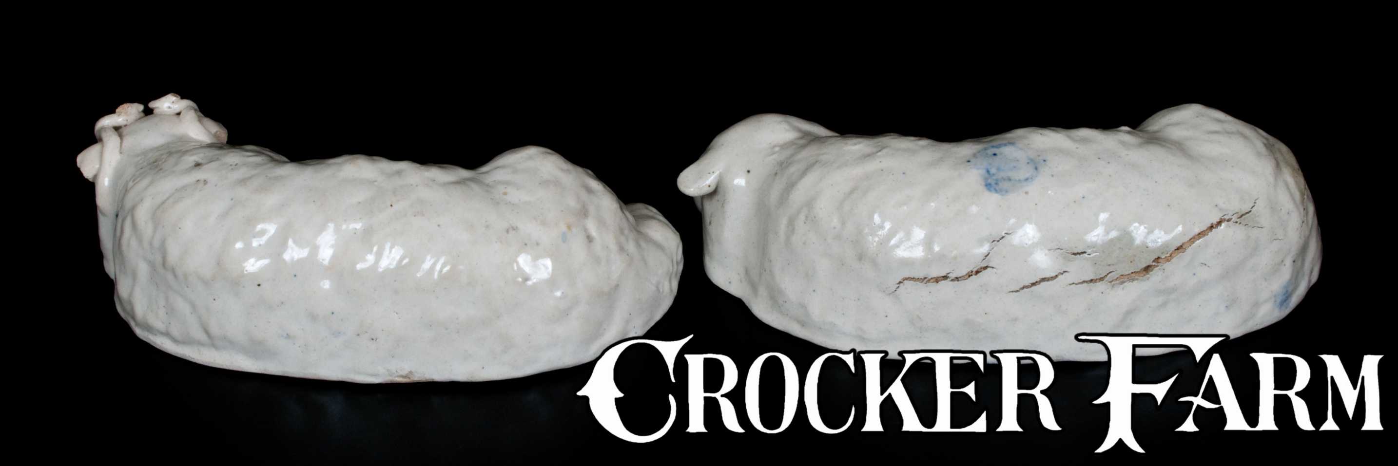 Rare Pair of Stoneware Sheep Doorstops, attrib. Pfaltzgraff Pottery Co., York, PA