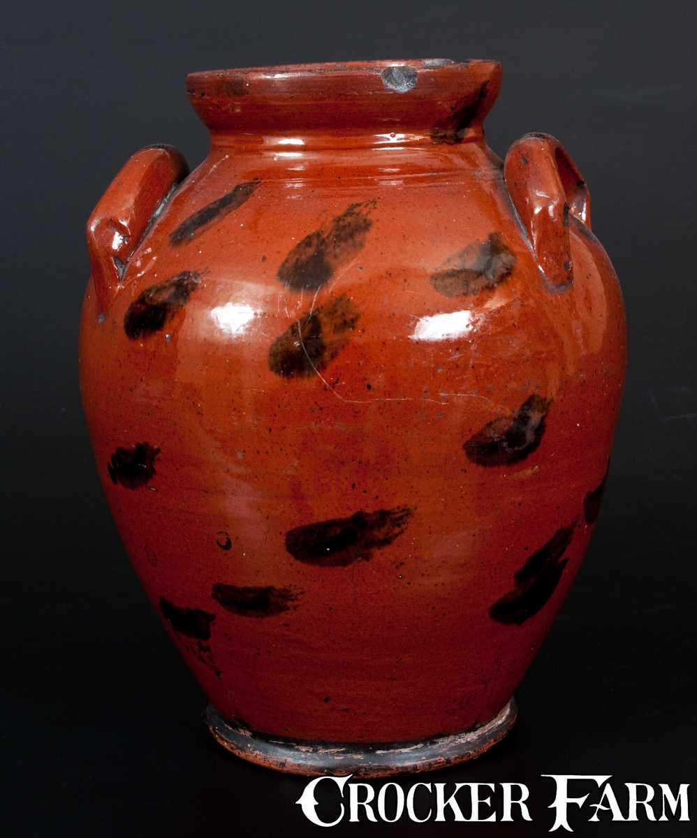 Ovoid Redware Jar with Profuse Manganese Splotches, Connecticut or Huntington, Long Island