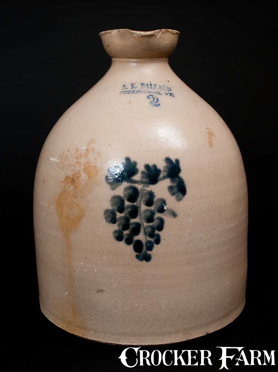 Scarce A. K. BALLARD / BURLINGTON, VT Stoneware Syrup Jug with Grapes Decoration