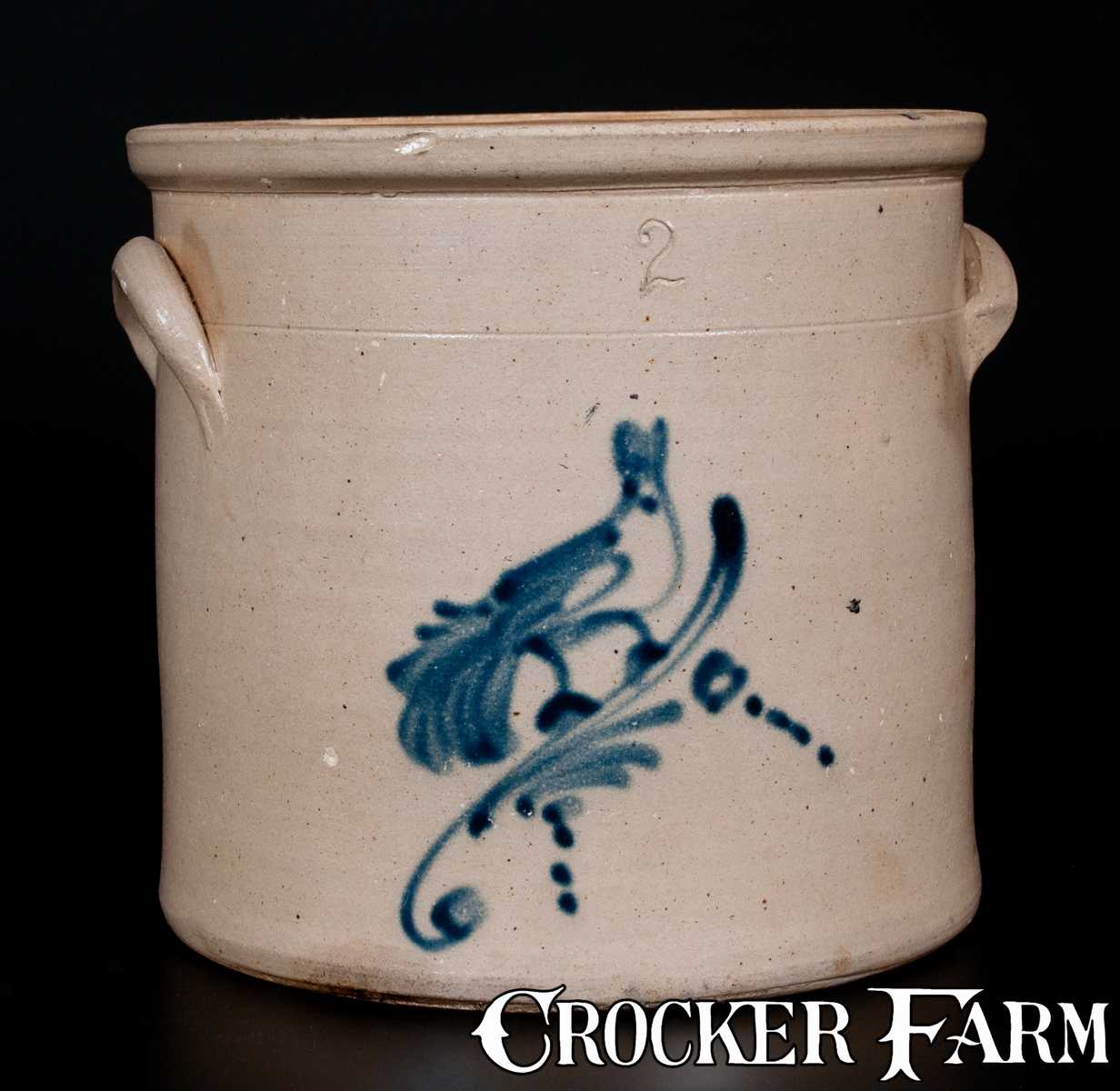 Two-Gallon New York Stoneware Crock with Cobalt Bird Decoration