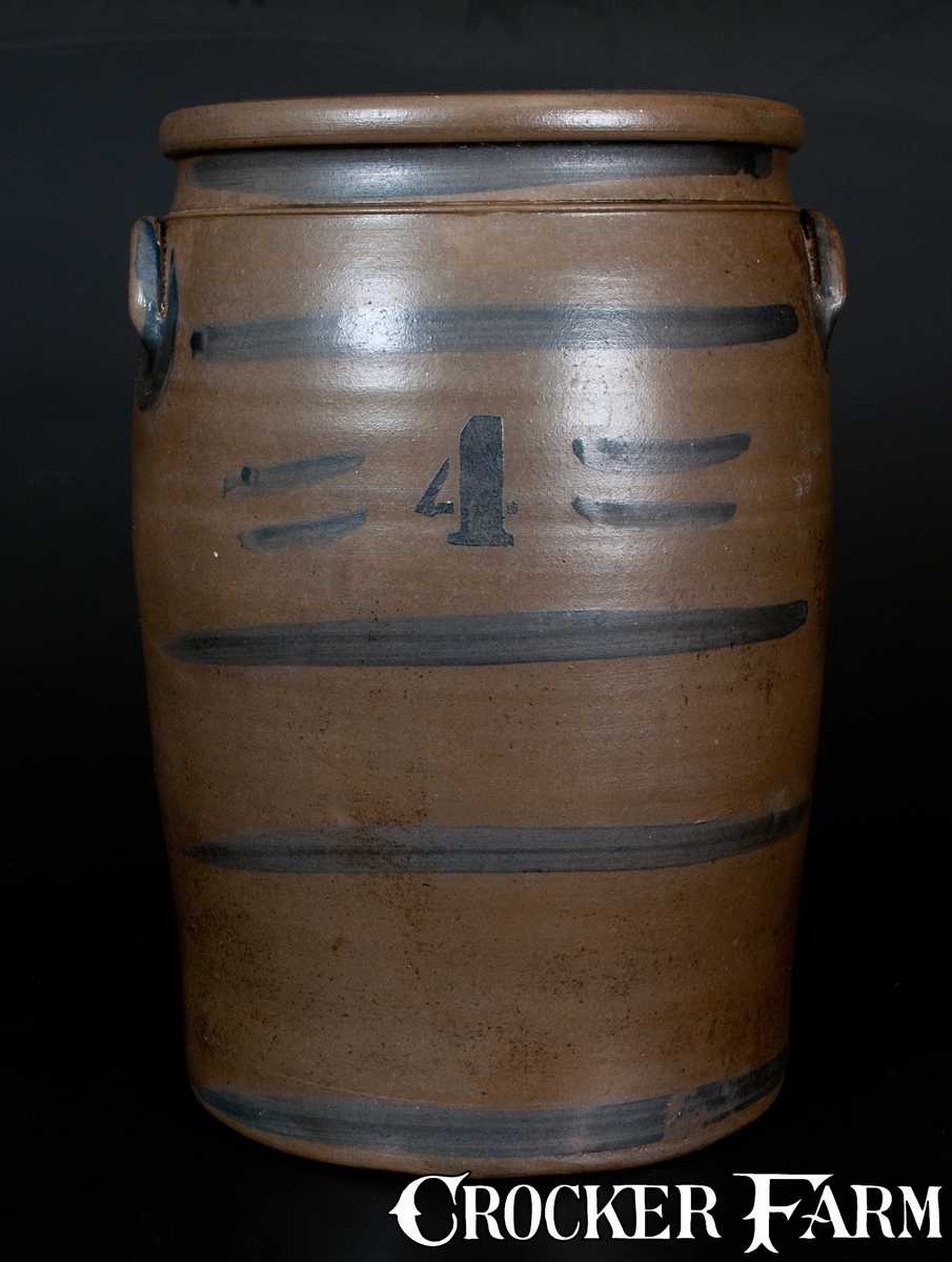 Four-Gallon Palatine, WV Stoneware Jar w/ Cobalt Stripes