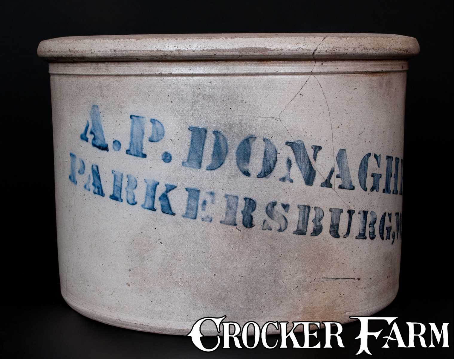Two-Gallon A.P. DONAGHHO, / PARKERSBURG, W. VA Stoneware Cake Crock